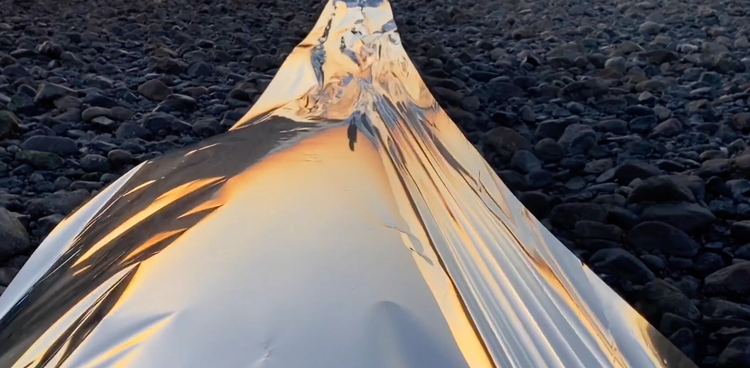 After completing “Red, White, and Blue”, I wanted to explore the reflective surface of the mylar at the same location. The result was “Catching The Sunrise” at the beach, created with friends, a roll of mylar, and a very windy morning. Once again the interaction that took place between people, materials, and the force of nature was totally unpredictable and exhilarating. Just trying to hold onto the mylar while the gust of wind was ripping it out of our hands and pulling us around, even throwing some of us off our feet, was just as much of a physical workout as it was an artistic one. This video just like the one before is a glimpse into our experience of healing through art.